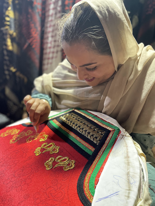 Altına bol pantolon giyorlar. Paça kısmına ise altın rengi tellerle işleme yapıyorlar. Akşamları sahil kenarında işlerken onları görebilirsiniz. Ayrıca tüm kıyafetlerini örtmek için yine de üstlerine “çarşaf” giyorlar. Ama İran genelindeki gibi simsiyah değil rengarenk. Terziler çarşafları farklı desen ve renklerdeki hafif kumaşlardan yapıyorlar. Bana biraz Hindistan havası varmış gibi geldi.